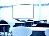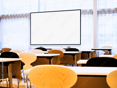 Mock up blank Screen indoor Seminar room Seat row Business education training