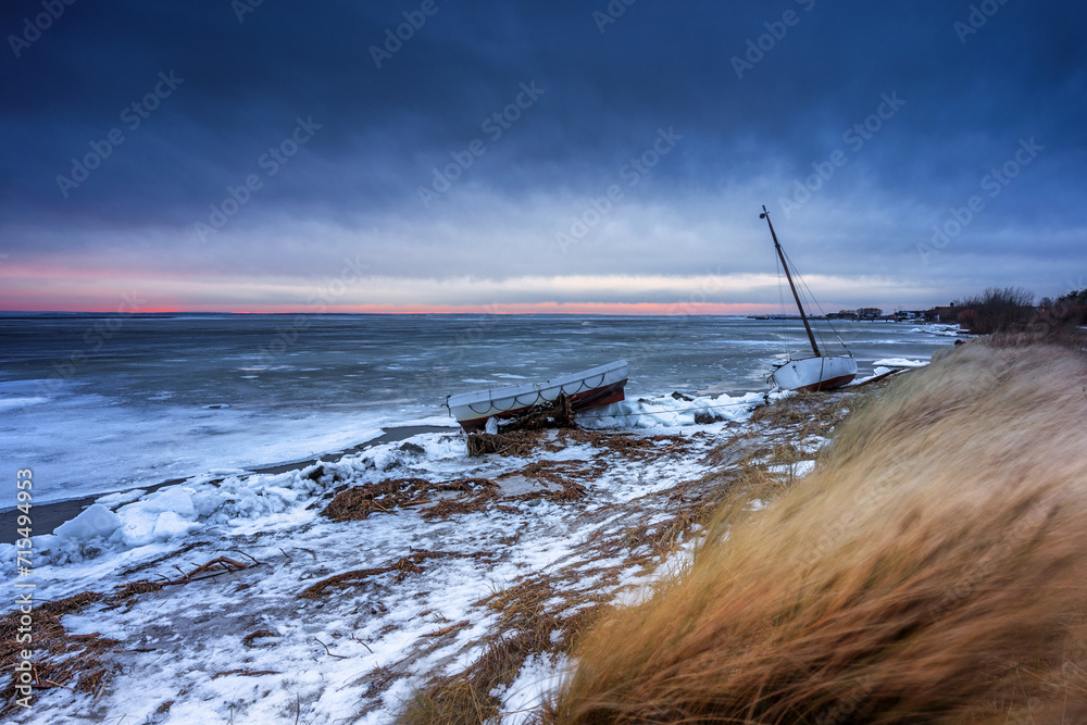 Baltic sea beach at winter in Kuznica, Hel Peninsula. Poland