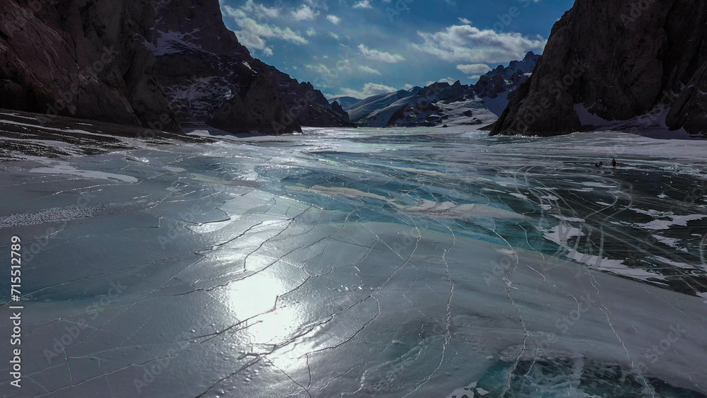 High-altitude frozen lake, lake in ice, lake of ice, Kyrgyzstan, Kyrgyzstan
