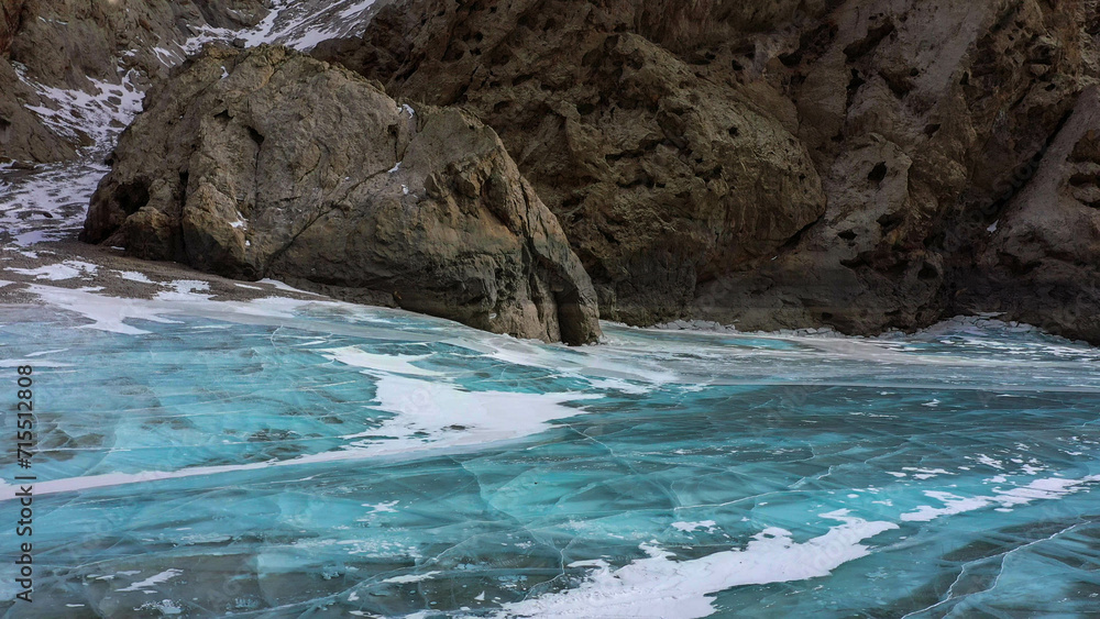 High-altitude frozen lake, lake in ice, lake of ice, Kyrgyzstan