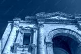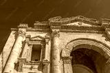 Bottom view of the Arch of Hadrian in Jerash archaeological site. Jordan.