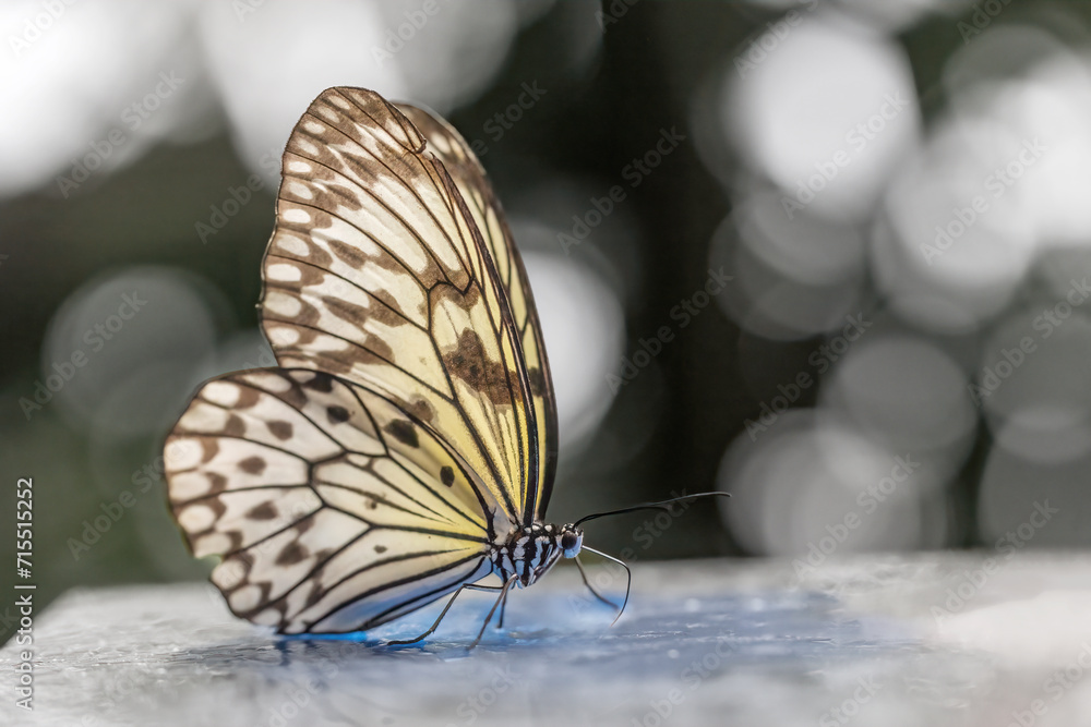 Beautiful rice paper butterfly is posing on the table. Horizontally.