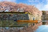 Himeji castle moat boat tour during full bloom cherry blossom in Hyogo, Japan