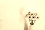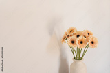 Aesthetic flowers composition. Elegant gentle gerbera daisy flowers bouquet in white clay vase