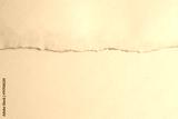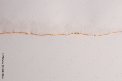 Torn empty pieces of texture paper with gold line on light beige copy space background.