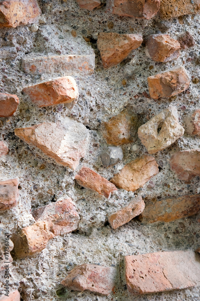 Old, weathered and jumbled bricks and mortar in Rome, Italy