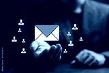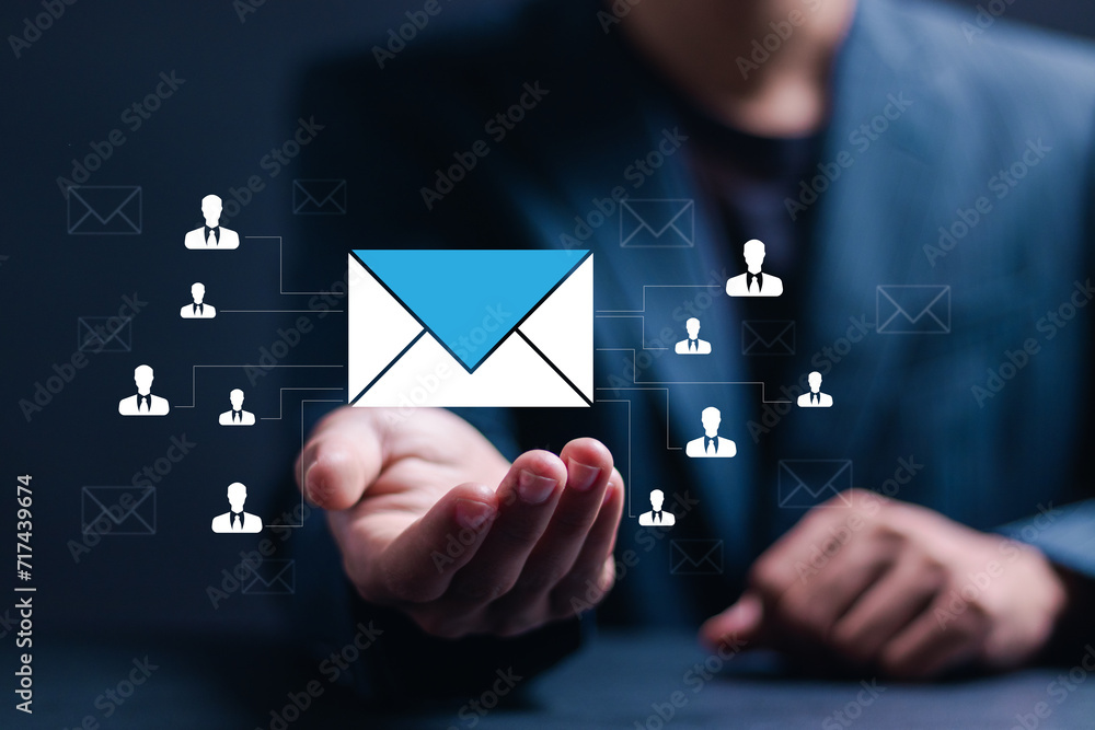 Marketing or newsletter concept, Businessman with virtual Email icons for Send bulk documents via email. Direct selling projects in business List of customers who want to send by email.