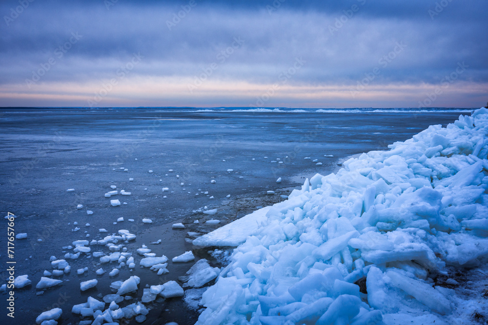 Baltic sea beach at winter in Kuznica, Hel Peninsula. Poland