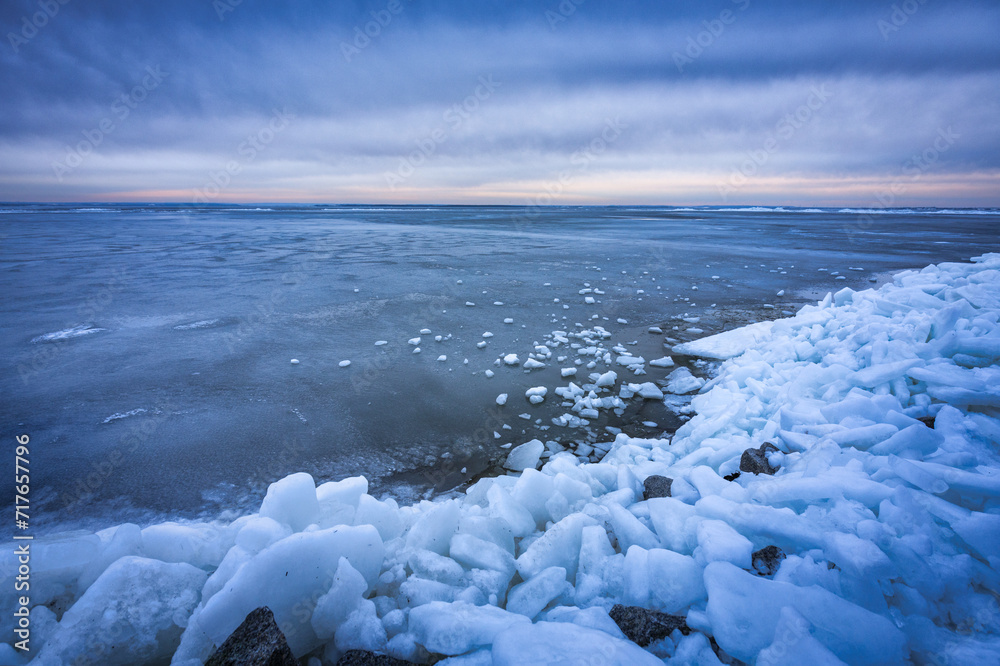 Baltic sea beach at winter in Kuznica, Hel Peninsula. Poland