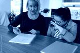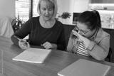 Down syndrome studying at home with a help of her mother