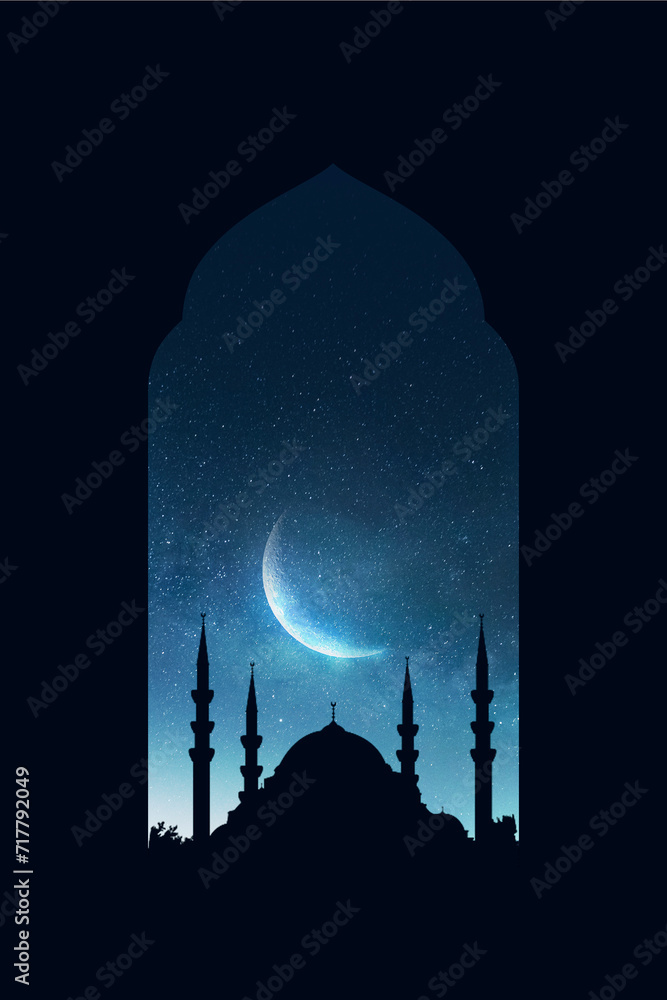 Mosque sunset islamic frame, vertical image, social media story, Ramadan or islamic concept wallpaper