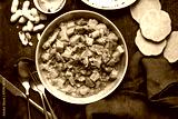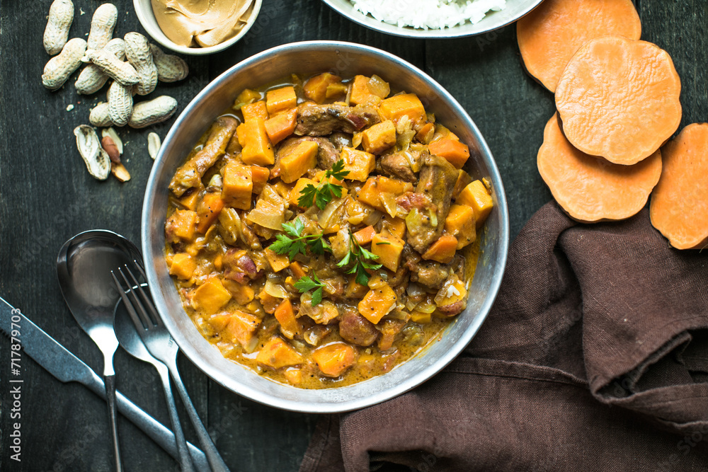 African chicken peanut stew with sweet potatoes with side of basmati rice