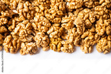 Walnuts background. Kernels walnuts. Top view. Vegetarian or healthy eating. A bunch of walnuts.