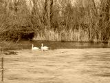 Paar von Höckerschwänen auf einem Teich im Winter - Cygnus olor 1