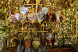 Messages and wishes written on the heart-shaped golden leaves hanging from the bells in Wat Saket temple Bangkok