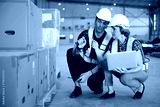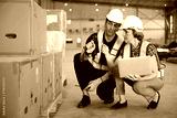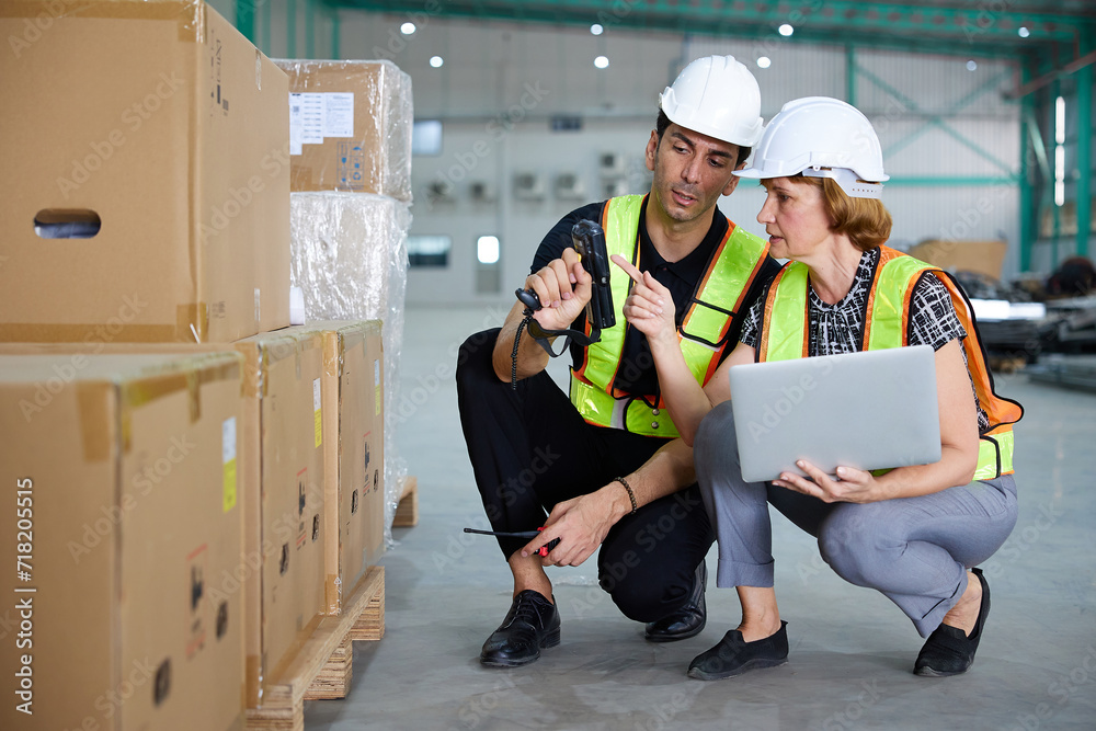workers using barcode scanner in the warehouse storage