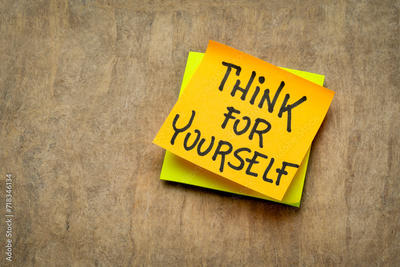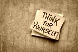Think for yourself reminder or advice - handwriting on a sticky note, personal development concept