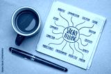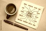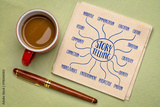 storytelling infographics or mind map sketch on a napkin with coffee, story, history, tradition and culture concept