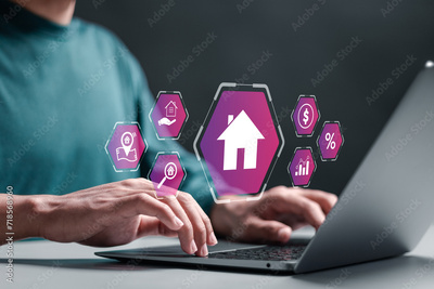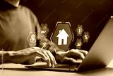 Business real estate concept. Businessman use laptop with analyzing mortgage loan home and insurance real property mortgage concept. interest rate, Investment planning.