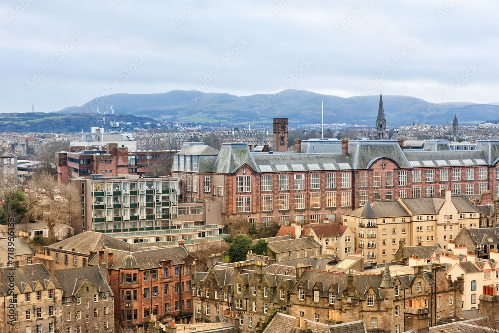 Panoramic view of Edinburgh cityscape from Edinburgh Castle