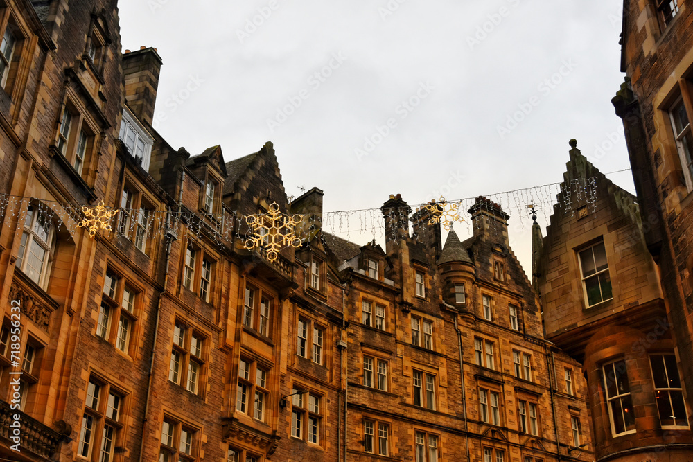 Historical houses along Cockburn Street in the old town of Edinburgh
