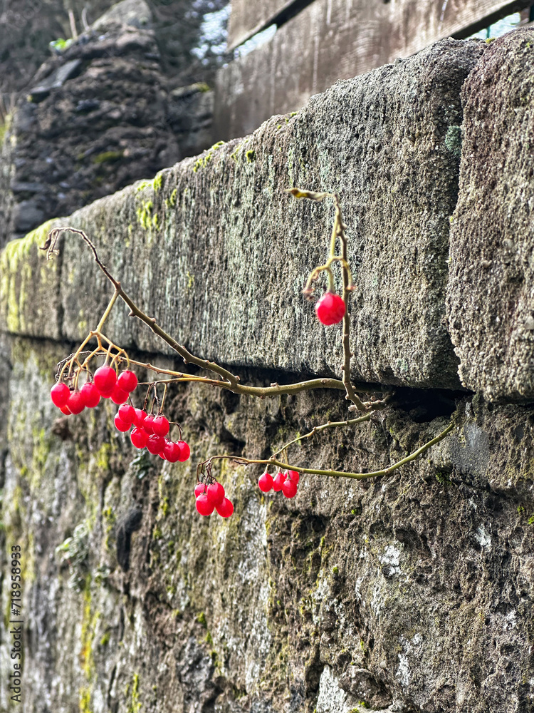 Plant growing in crack of old brick wall in Stirling, Scotland