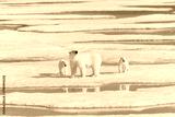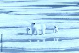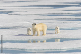 Polar bear mother (Ursus maritimus) and twin cubs on the pack ice, north of Svalbard Arctic Norway