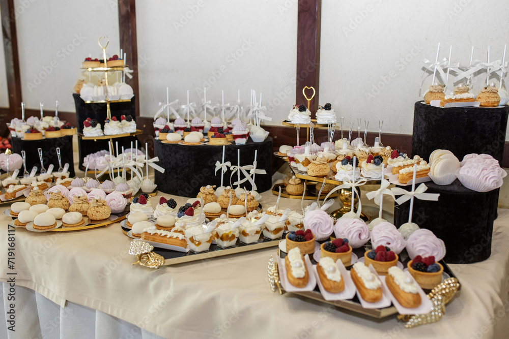 Candy bar. Food at event. Luxurious Dessert Table at Elegant Catering Event