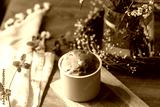 Easter traditional bread on rustic wooden table with flowers. Fresh baked homemade easter cake in forms. Orthodox traditional food paska