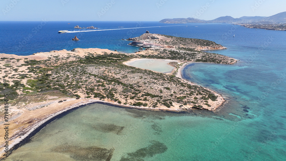 Aerial drone photo of Feira a paradise landscape islet of Northern part of Antiparos island, Cyclades, Greece