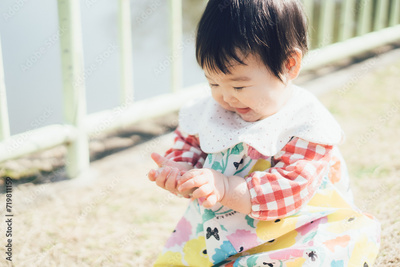 外で遊ぶ赤ちゃん