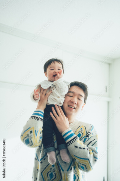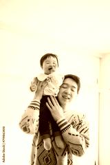 お父さんの肩に乗る赤ちゃん