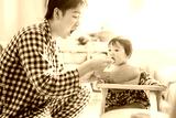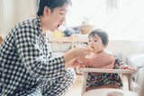 離乳食を食べさせるお父さんと赤ちゃん
