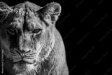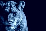 leonessa - animale selvaggio su sfondo nero con spazio testo