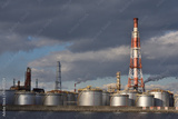 貯蔵タンクのあるコンビナート風景