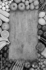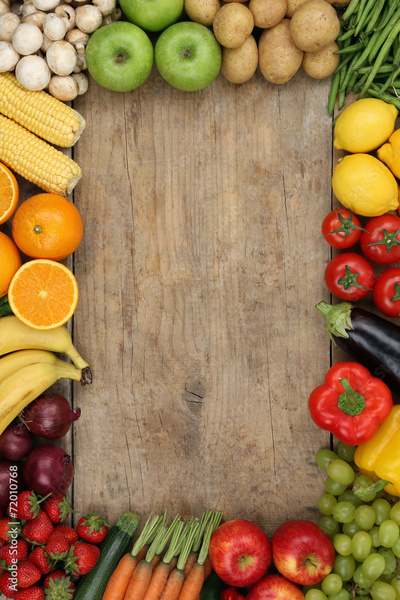 Gesundes Obst, Früchte und Gemüse mit Textfreiraum