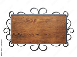 Old wood plate or sign in metal frame isolated
