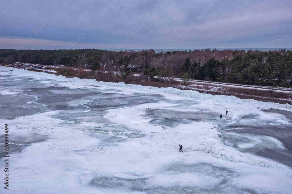Frozen Bay of Puck near Kuznica at sunset, Hel Peninsula. Poland