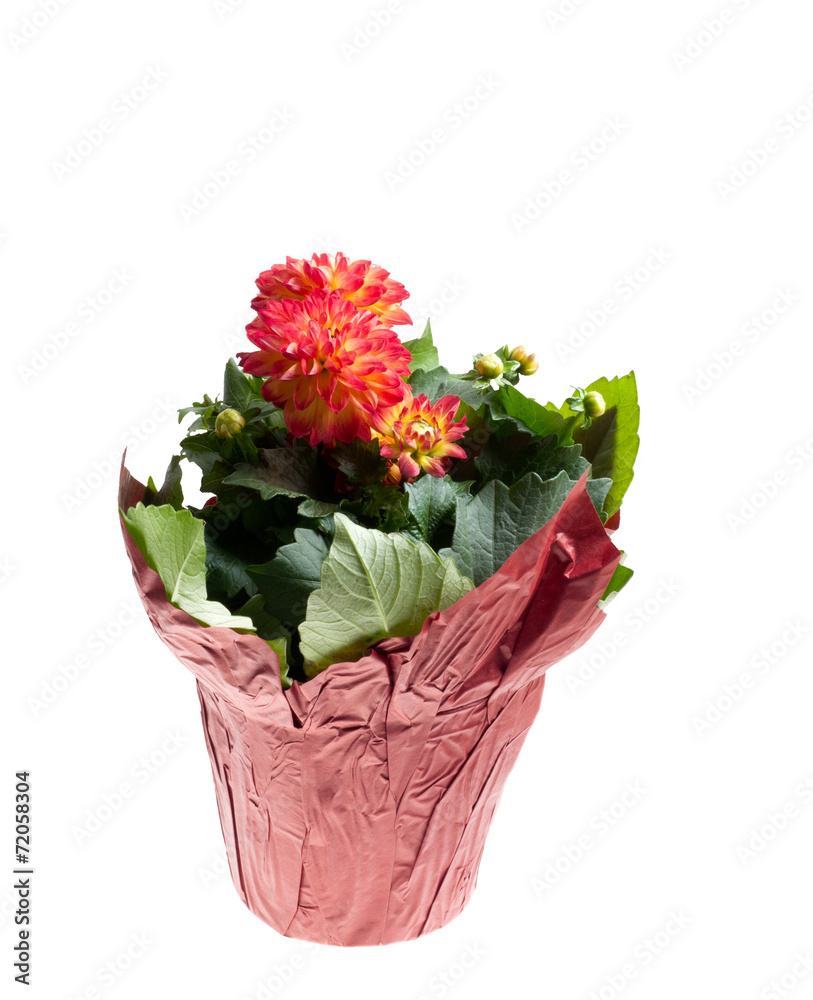 Dahlia blooming in planter