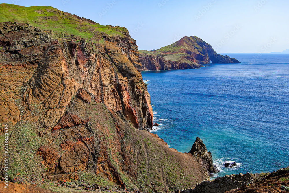 Dramatic sea cliffs at the Ponta de São Lourenço (tip of St Lawrence) at the easternmost point of Madeira island (Portugal) in the Atlantic Ocean