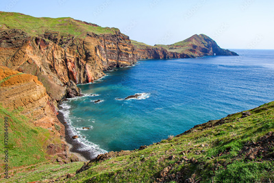 Stony beach on the Ponta de São Lourenço (tip of St Lawrence) at the easternmost point of Madeira island (Portugal) in the Atlantic Ocean