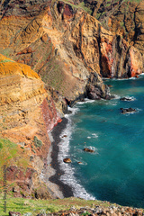 Stony beach on the Ponta de São Lourenço (tip of St Lawrence) at the easternmost point of Madeira island (Portugal) in the Atlantic Ocean
