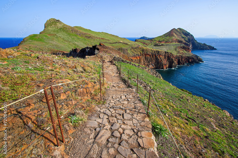 Trail to the Ponta de São Lourenço (tip of St Lawrence) on a narrow isthmus at the easternmost point of Madeira island (Portugal) in the Atlantic Ocean