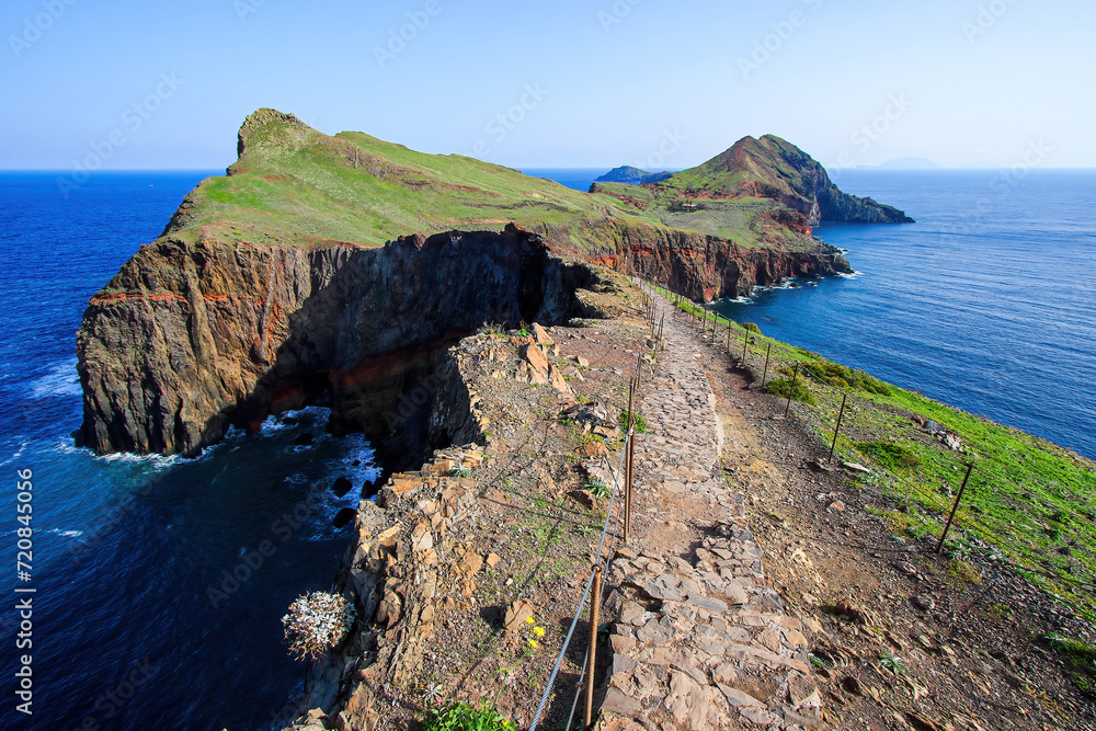Trail to the Ponta de São Lourenço (tip of St Lawrence) on a narrow isthmus at the easternmost point of Madeira island (Portugal) in the Atlantic Ocean