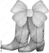 Coquette Cowgirl Boots and pink ribbon bow watercolor