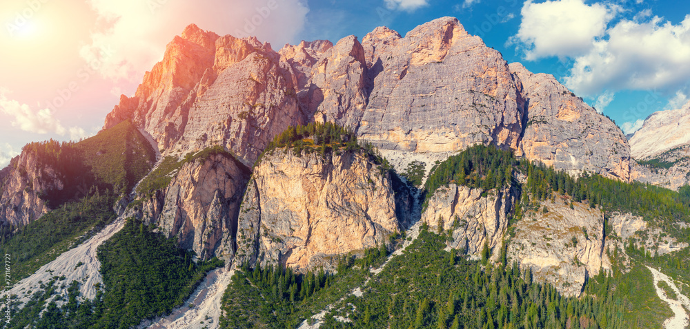 Mountain landscape. Rocks against the sky. Piz dles Cunturines. Dolomites in Bolzano, Italy, Europe