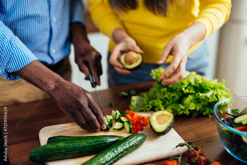 cinematic image of a multiethnic senior couple.