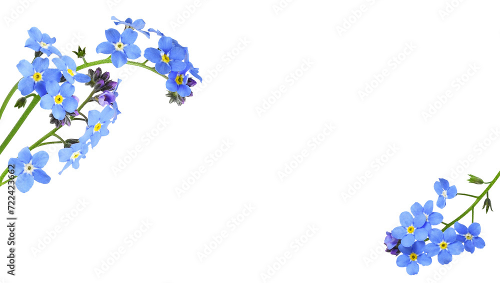 Blue forget-me-not flowers in a floral corner arrangements isolated on white or translated background