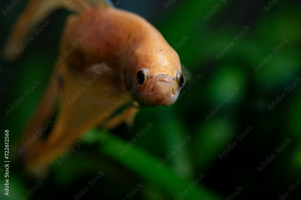 Beta in the aquarium looking at camera. close-up. shallow depth of field