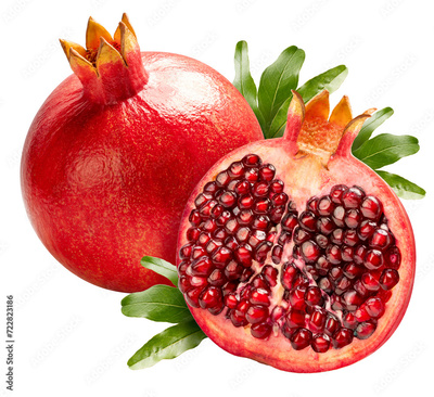 Red Pomegranate isolated on white background, Pomegranate on White Background PNG File.